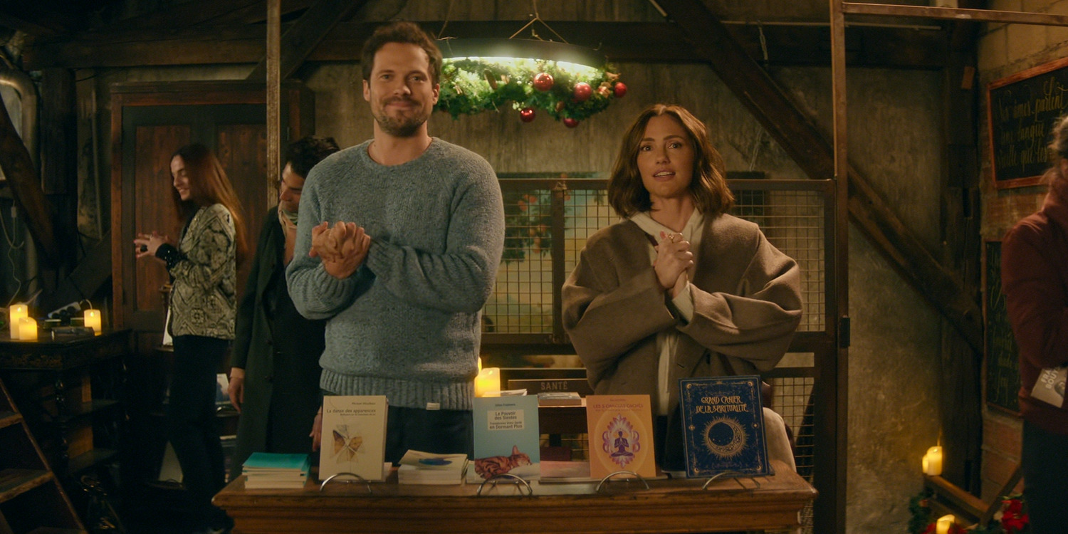 In ‘Champagne Problems,’ most of the narrative remains a work of fiction. Therefore, the worldbuilding around Sydney and Henri’s love story remains confined to the film’s on-screen story. In real life, there are no records of a bookstore in Paris that seems to be identical to Les Etoiles. Therefore, even though fans can find plenty of small and local booshops in the French city, unfortunately, there is no direct counterpart to the location of the central couple’s meet-cute. Still, Les Etoiles remains a fictional detail that adds a unique and grounding touch to the film’s narrative. As the story sets Sydney up for a Parisian romance, it intentionally avoids clichéd, tourist-trap locations, such as the Eiffel Tower or the Café de Flore. Instead, it opts for a more localized location to become the primary backdrop to the Holiday-themed romcom.