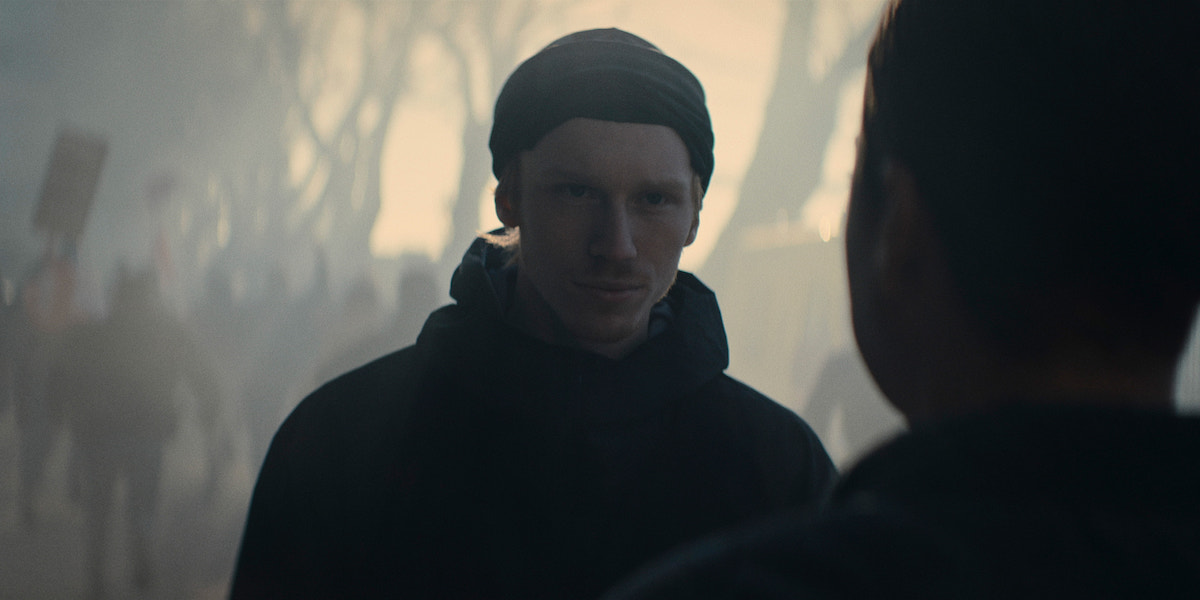 June Lenker is posted to keep an eye on a protest taking place on Suffolk Square. The leader’s speech is being carefully monitored, with a lawyer advising the cops on whether or not the speech includes words for which he can be arrested. Meanwhile, a swarm of anti-protestors gathers a few streets away, and evidently, the cops don’t seem prepared to handle that kind of crowd. By the time June gets the order to arrest the leader, because he has finally used the keywords that point towards a violent undertaking, the anti-protestors break through the police barricade and run towards the protest. Things get violent pretty quickly, and in the middle of this, a young man named Rohaan gets stabbed to death. Lenker also notices a familiar face before they don a mask.
