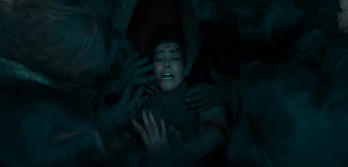 Deekay’s ‘Kaatteri’ centers around a group of kidnappers, Gajja (Karunakaran), Kaliyurunda (Ravi Mariya), and Sankar (Kutty Gopi), who seek to escape their employer Naina (John Vijay). Under the advice of their friend Kiran’s (Vaibhav) newly wedded wife, Shwetha (Sonam Bajwa), the group ends up in the village of Kolaatipuram. Home of the titular Kaatteri or Forest Vampire, the village has immense treasure hidden underground and was the site of a deadly tragedy in 1968. The Tamil film dives into the theme of haunted and isolated villages in the Indian setting. Watch the movie here.