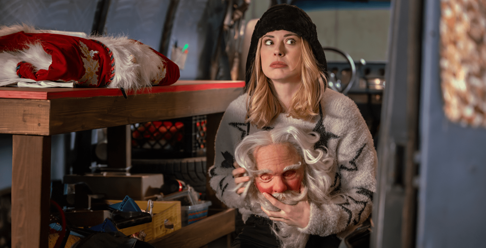 While ‘My Secret Santa’ might not have directly drawn inspiration from reality, its connection to films with similar narratives is undeniable. In an interview with Entertainment Tonight, actor Alexandra Breckenridge confirmed that the movie, ‘The Santa Clause,’ served as a reference point for how she approached her transformation into Santa. However, she also added that the connection was largely superficial, and she relied on her own instincts as an artist. To make her performance as believable as possible, Alexandra went the extra mile and donned the body suit and prosthetics, fully immersing herself in the role of Saint Nicholas. Thus, the movie’s premise was partially recreated in real life, with the actor and crew gaining a much deeper understanding of what it would be like to be in Taylor’s shoes, both literally and figuratively.