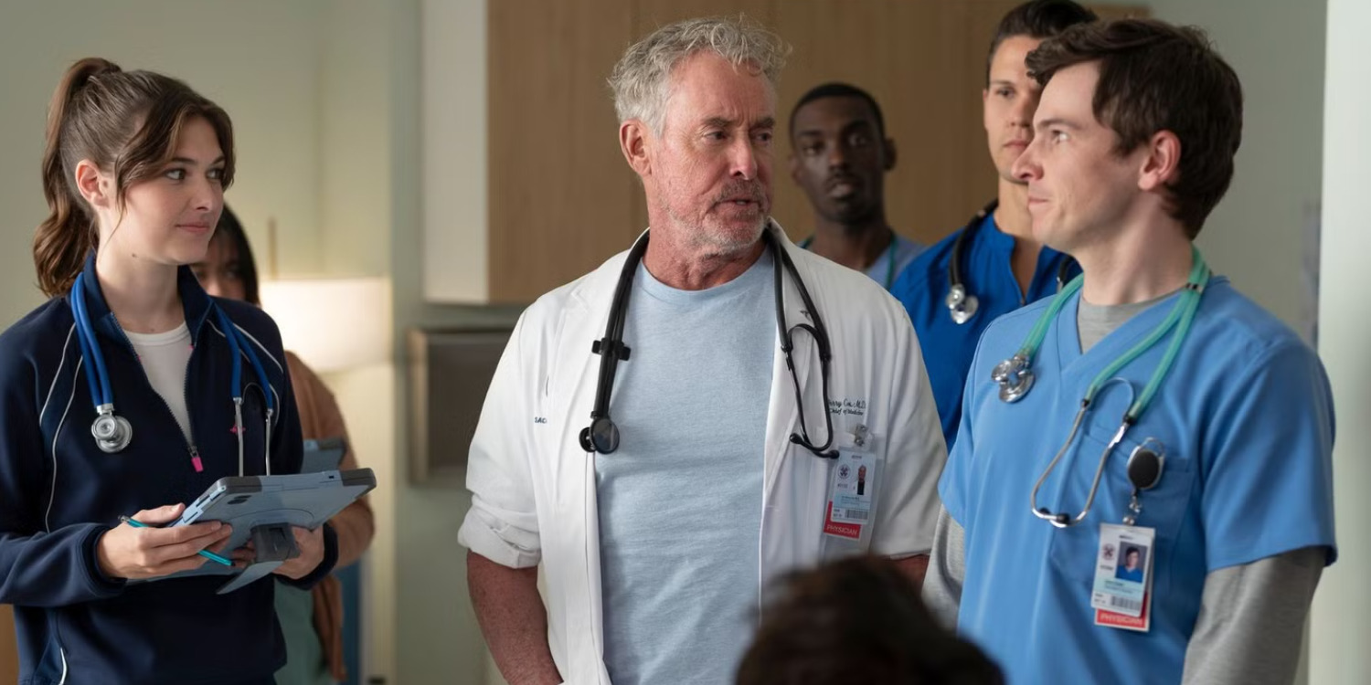 In ‘Scrubs,’ Dr. Perry Cox, the attending physician turned Chief of Medicine at Sacred Heart Hospital, occupies a significant role as the protagonist’s reluctant mentor. Over the course of the original series, Dr. John “J.D.” Dorian looks up to the more experienced healthcare professional, seeking his approval. The latter’s general dislike and criticisms of the other add an entertaining and ever-evolving edge to their dynamic. Despite the time jump in the revival series, the nature of this relationship remains much the same. However, during their unexpected reunion brought on by the now-congierce doctor’s unplanned visit to the hospital, Cox seems to have a particular agenda: passing off the torch to his unofficial mentee. At the end of episode 1, J.D. accepts the esteemed title of Chief of Medicine as the older doctor retires from Sacred Heart.