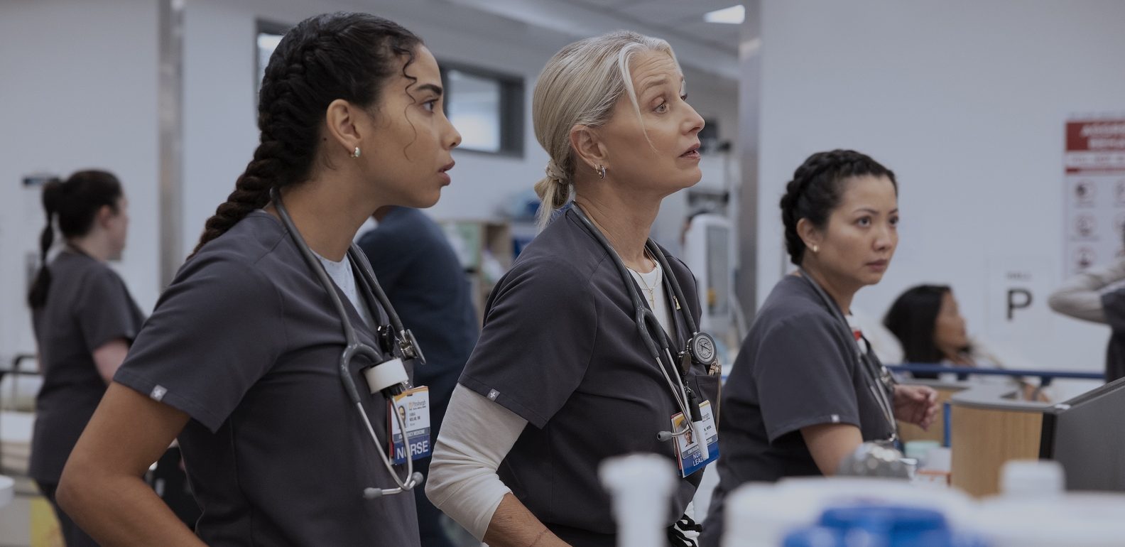 At first, Dana doesn’t intervene in their discussion, but after a while, she realizes Dr. Al is right in insisting that they do whatever they can they help their patients. She checks in on Gus, who has been told that he cannot have solid foods because of a broken jaw. They have a chat where she discovers that he is a Pittsburgh native. She feels a sense of camaraderie that leads her to do something that leads the doctors to believe that Gus is more serious than they imagined, prompting them to keep him in for a bit more. This sudden change in the patient’s situation shocks Robby, but it doesn’t take him long to realise that Dana is the one behind it. Still, this doesn’t solve the problem of more patients rolling in and the need to clear the beds for them.