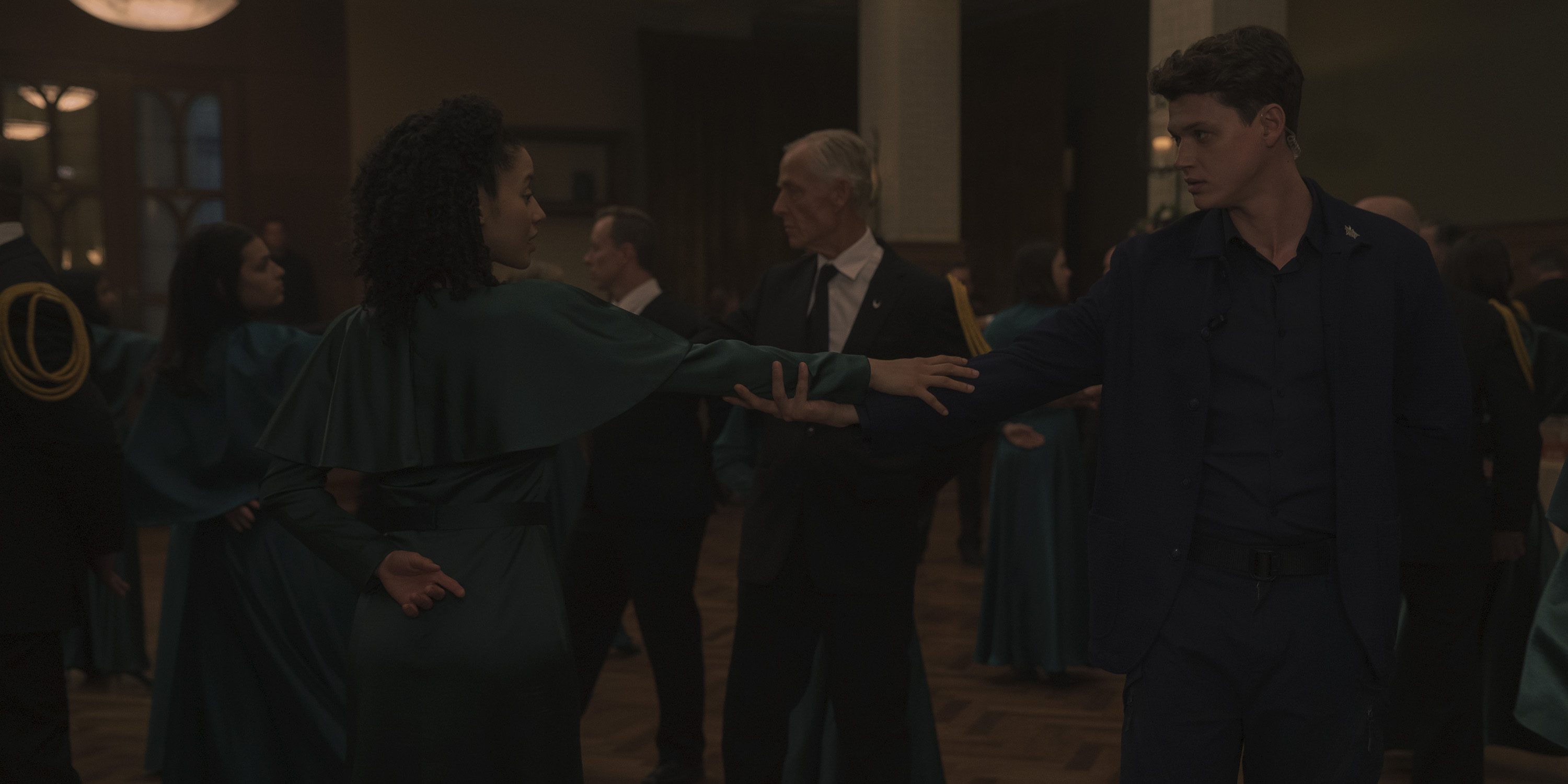 While Agnes tries to understand why her friend is acting weird, the ball begins. The girls walk into the hall where they start to dance under the watchful eyes of the Aunts and the young Commanders. Then comes the turn of the fathers, which brings Dr. Grove within a short distance of her. While he is dancing with Becka, and Agnes has her own father in front of her, she is taken aback and panics for a moment. Once again, Gilead’s training of pushing away her fears comes in handy, and the dance proceeds. When the dance with the fathers is done, the young Commanders take over. Conversations flow as the men seem just as awkward as the girls, and everything seems to go well. But this was just the first round.