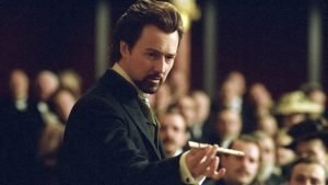 The Illusionist is a 2006 American romantic mystery film written and directed by Neil Burger. It stars Edward Norton, Paul Giamatti, Jessica Biel and Aaron Taylor Johnson. Loosely based on Stephen Millhausers short story “Eisenheim the Illusionist”, it follows Eisenheim as he becomes a magician and uses his powers to free his lady from the royal residence.