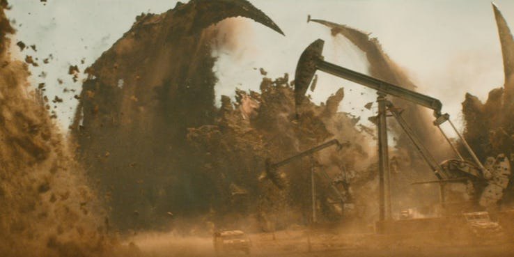 Another notable presence were the spiked arms emerging from the oil field in this film, also shown in the trailer, and a shot of a beast with a “mountain back” if you know what I mean. My guesses range from Spiga to Kamacuras for the first beast, and Anguirus for the second terra beast. There is definitely more to come, since Gigan and Titanosaurus too have been acquired y Legendary. Whether they are utilised in ‘Godzilla vs. Kong’ or in this film’s direct sequel is still a mystery, considering how early it still is to predict.